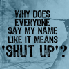 Description: text: Why does everyone say my name like it means 'Shut Up'?