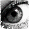 Description: a black & white photo of an eye, animated to repeatedly change the iris colour